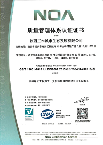 質量管理體系認證證書 |