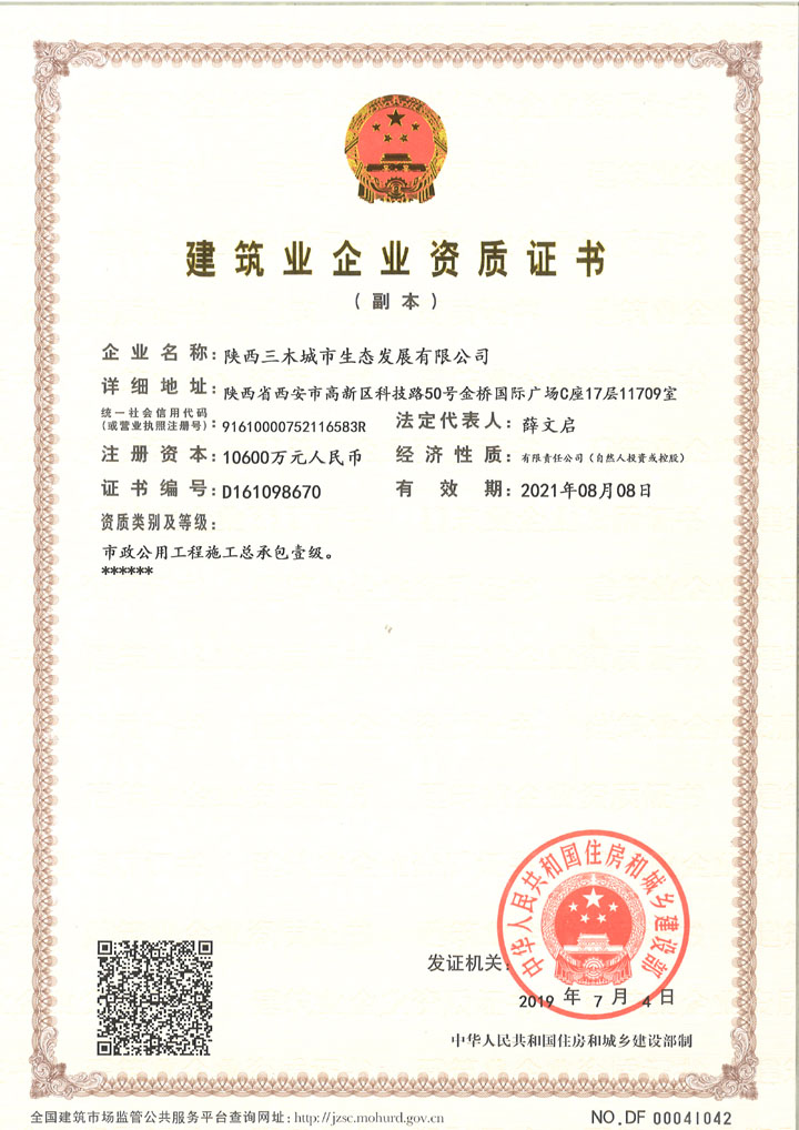 市政公用工程施工總承包壹級資質(副本) |