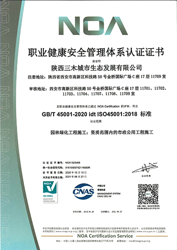 職業(yè)健康安全管理體系認證證書 |