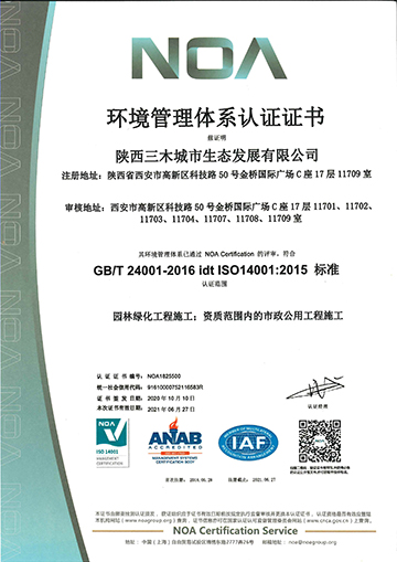 環(huán)境管理體系認證證書 |