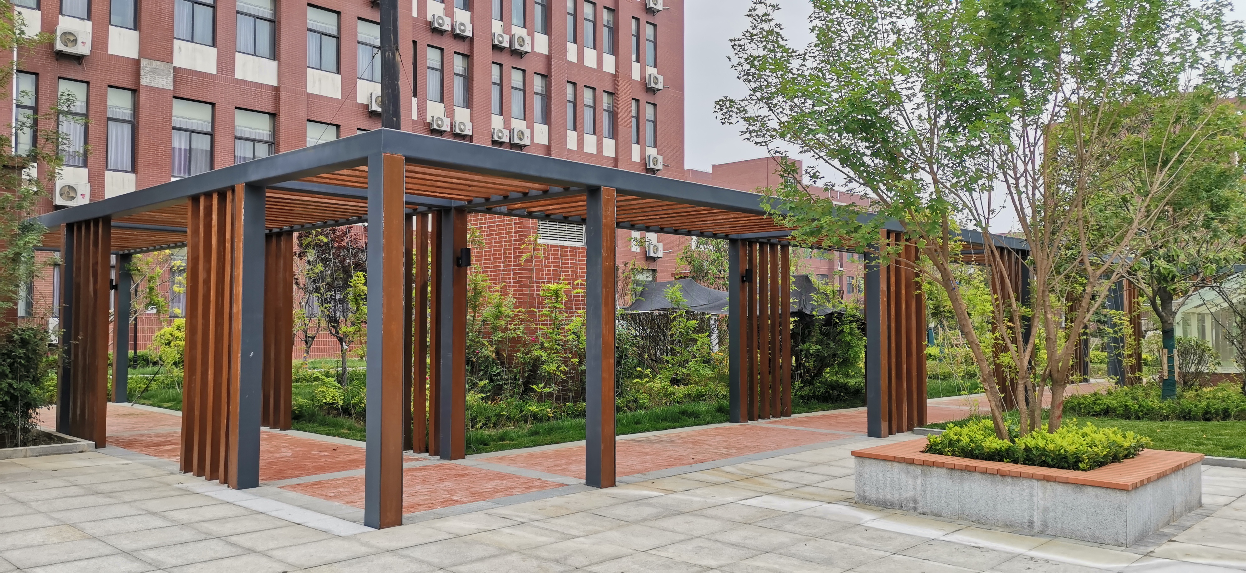 清華大學(xué)附屬中學(xué)秦漢學(xué)校創(chuàng)建示范學(xué)校綠化提升工程,項(xiàng)目地點(diǎn)位于西咸新區(qū)秦漢新城蘭池二路,本工程為EPC工程,本工程除正常的綠化、土建提升內(nèi)容外,另加入了大量的景觀特色廊架、雕塑、景石雕刻、噴泉、休閑坐凳及文化宣傳欄等,施工改造完成后,學(xué)校園林綠化景觀與人文氣息相結(jié)合,整體景觀效果得到大幅提升,為學(xué)校的老師和學(xué)生營造了一個(gè)優(yōu)美的教育和學(xué)習(xí)環(huán)境。